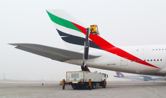 該類設備是將加熱到一定溫度的除冰液以一定壓力噴灑到飛機機身,用于對飛機局部結冰部位或飛機全身進行除冰作業的機場專用設備。同時,還可用于飛機的維修、檢查和清洗作業。該設備由汽車底盤、發動機總成、泵室、鍋爐、水路系統、伸縮臂、工作艙(斗)、液壓系統和電氣系統組成。