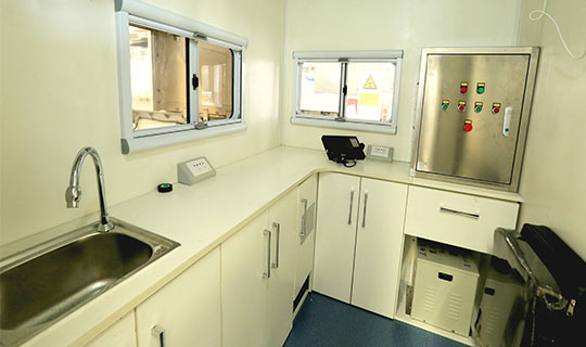 防疫車主要用于對人員集結地、野外醫院、傷病員轉運站,以及附近居民點等室外環境的細菌和蚊蠅等媒介昆蟲進行衛生防疫處理。采用駕駛室與車廂分離的廂式結構:一部分為固定式車廂,作為消殺器械安放和工作人員乘坐之用;另一部分為可開式車廂,裝有多用途噴霧機及其附屬設